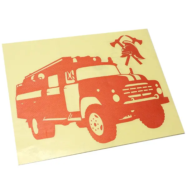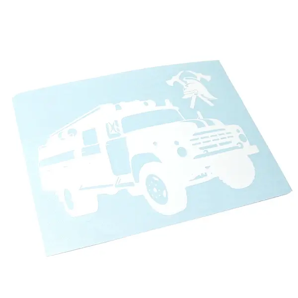 Наклейка «Пожарная машина АЦ-40-130» - изготавливается методом плоттерной резки (без фона). Наклейка с изображением пожарного автомобиля АЦ-40-130 на базе легендарного советского автомобиля ЗИЛ-130 и эмблемой пожарной охраны. Наклейка легко наносится на стекло, металл, пластик или любую другую гладкую и ровную поверхность.