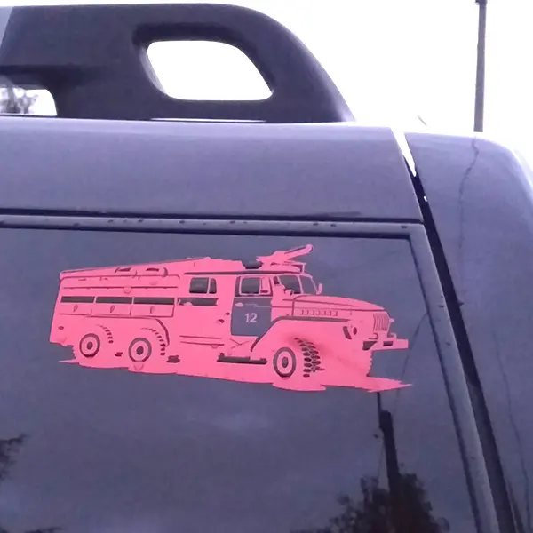 Наклейка «Пожарная машина АЦ-40-43202» оригинальный и эксклюзивный подарок работнику пожарной охраны на День рождения или профессиональный праздник, также наклейка отлично подойдет для оформления стенда, информационных досок и стен.