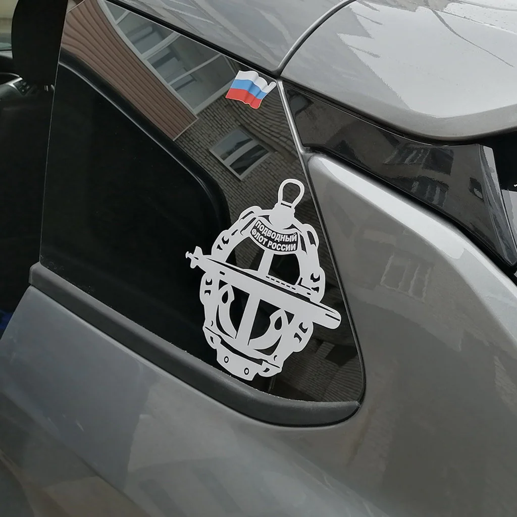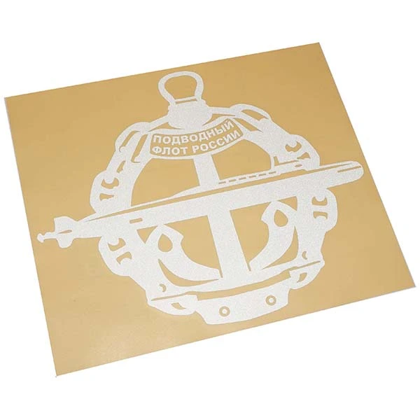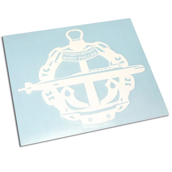 Наклейка «Эмблема «Подводный флот России» - российская подводная лодка проекта 971 «Щука-Б». Наклейка изготавливается методом плоттерной резки виниловой или светоотражающей пленки. Наклейка легко наноситься на любую ровную и гладкую поверхность, пластик, стекло, металл, прекрасно подходит для наклеивания на поверхность кузова или стекла автомобиля. Хороший подарок моряку-подводнику.